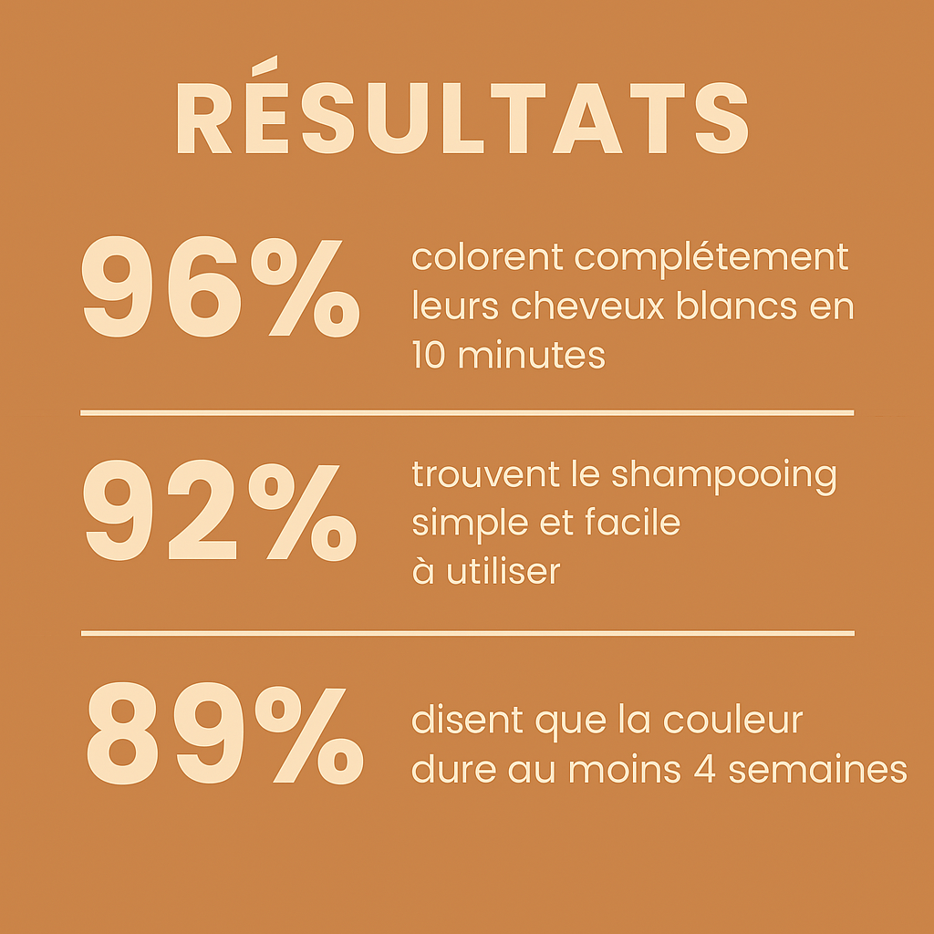 Oui, dès la première application. En seulement 10 minutes (ou marron), vos cheveux retrouvent une couleur noire intense et uniforme.